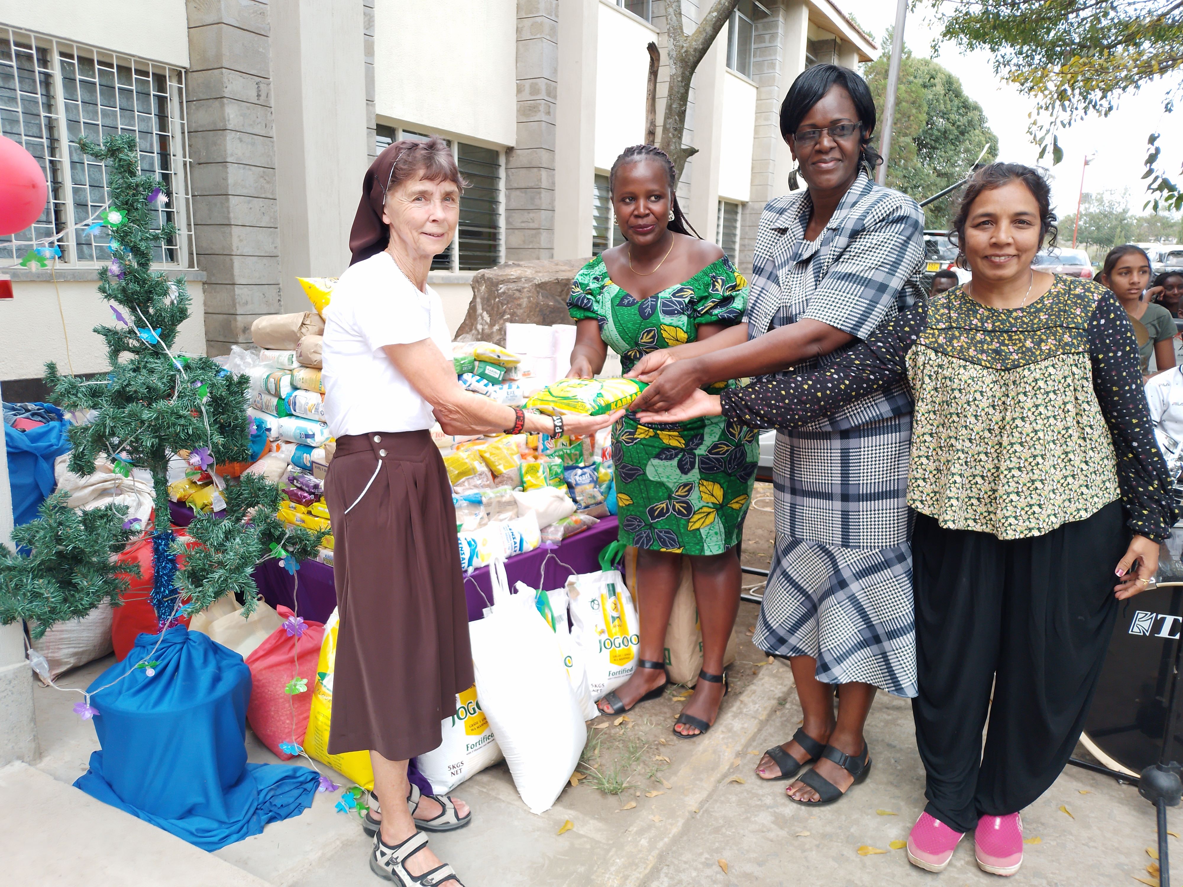 * Receiving goods in kind from the local community. These are majorly foodstuffs, clothing, shoes and assisted devices for the chronically ill and or terminally ill. The donations are distributed to those in need.